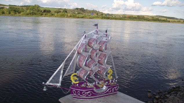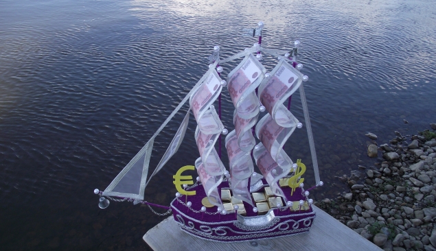 Вот такой корабль богатства и благополучия мы с младшим внуком сделали его папе на