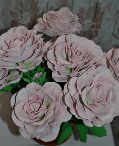 Подарочный кустик роз. Задумывался этот куст как подарок маме на день варенья, но как-то время и желание не дали сделать его вовремя. Так что непосредственно ко дню варенья были готовы только основные "большие" розы. и вот кучу времени спустя наконец-то появилось желание доделать сие творение.