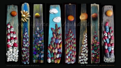 Наше начальство решило обновить галерею в детском саду.И вот появилось задание-каждой группе выполнить несколько картин в разных и необычных техниках.Наша группа предложила ленты,рисунок на камне и панно из стеклянных камешков.Одобрили все.Работать было очень интересно.