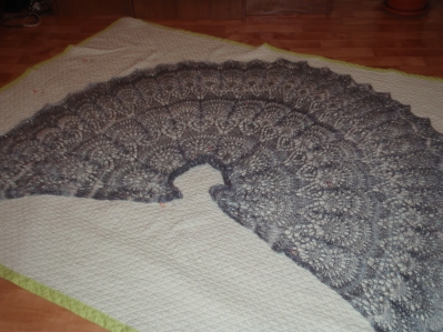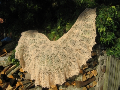 . Вот моя Фрея! Нитки Кауни 8/1 Томас, спицы 3,5., высота шали 70см, длина по внешней дуге 320см!