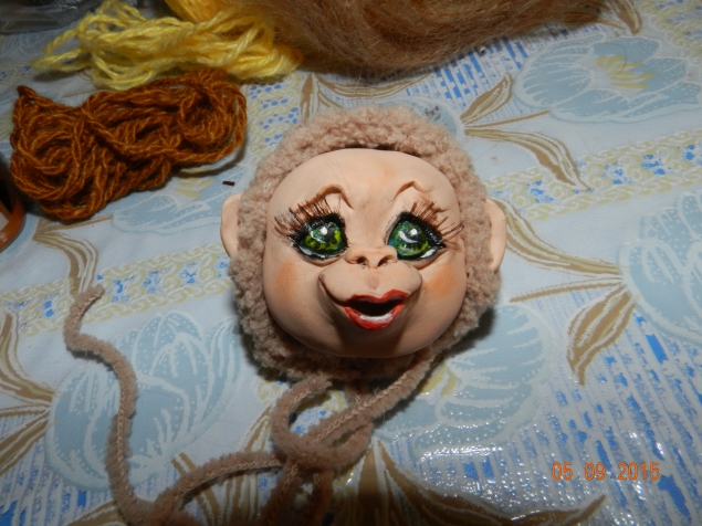 Я думаю первый вариант, где Вы приложили волосы из пряжи.