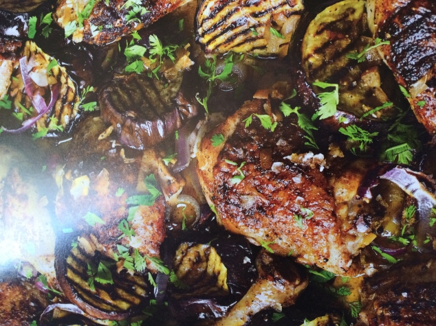 блюдо это называется .... Ой и не знаю как перевести - по простому - курица и баклажаны на противне..