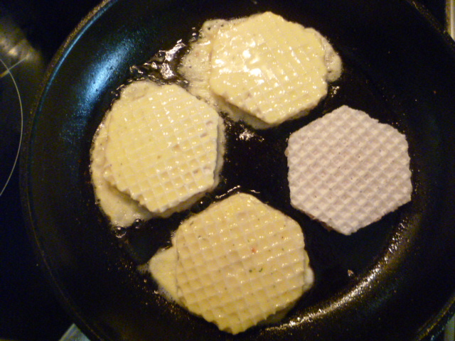Я думаю сырники между лепешечками вафелек вложить, обмакнуть либо в льезон и обвалять в муке или же как сделала я и обжарить будет так же очень вкусно.