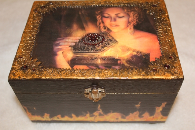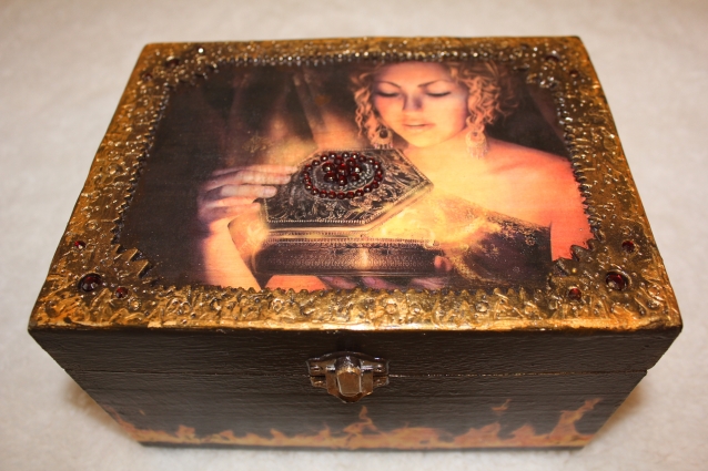 Иногда начну работать с одной шкатулкой, не закончив, начинаю вторую, а придет какая-то идея- то и третью. И так я сделала эти три шкатулки одновременно.