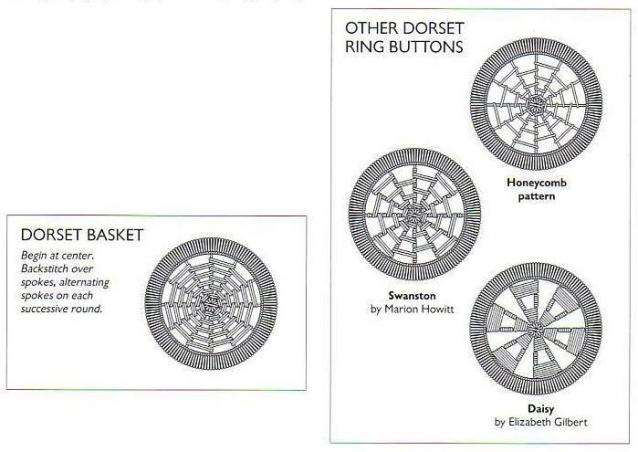 Дорсетская пуговица изготавливается с помощью металлического или пластмассового кольца, посредством переплетения ниток (шерстяной, хлопковой, шелковой пряжи).