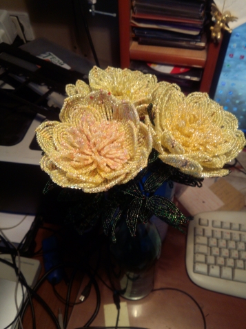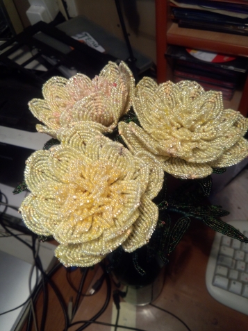Как сказали родственницы, огромный плюс пионов из бисера состоит в том что лепестки с них не сыпятся,