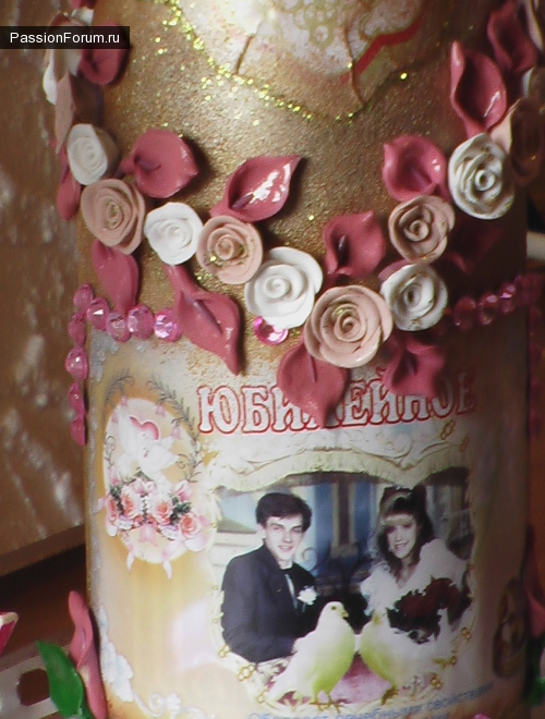 Красотища! А я все собираюсь сделать сыну на свадьбу, но почему-то боюсь. А как вы сделали на бокалах белые штучки воздушные, на чем они деожатся и из чего?