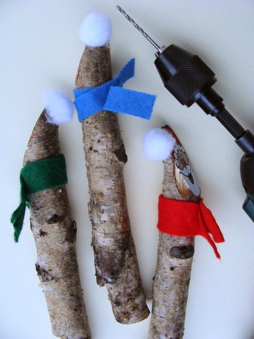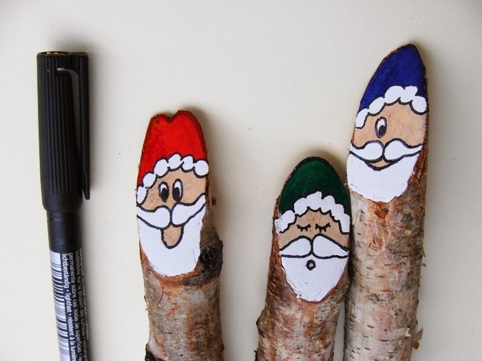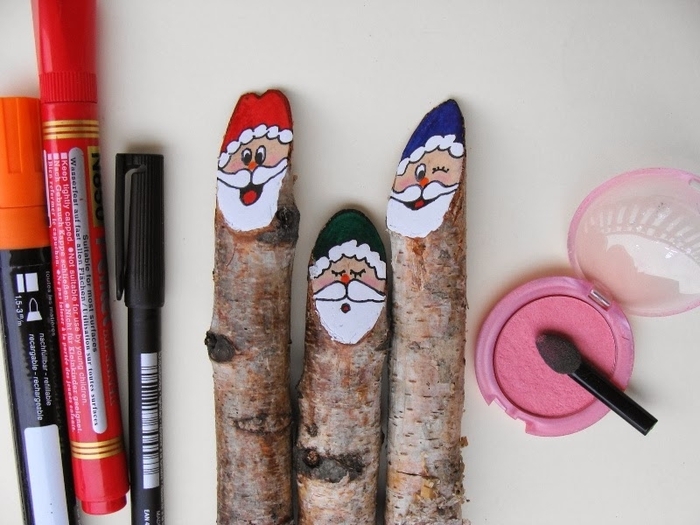 Итак, смотрим фото мастер-класс и вдохновляемся на творчество вместе с детьми. Куда приспособить таких березовых человечков? Да хоть в горшок с комнатным цветком посадить), ведь совсем скоро праздник! Деревянных Санта Клаусов можно применить в качестве подвески на елочку, можно декорировать ими венок для украшения интерьера и так далее.