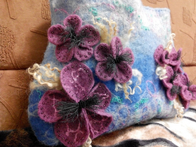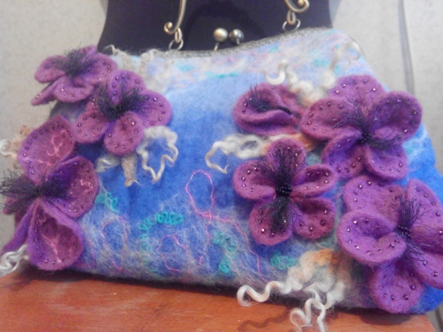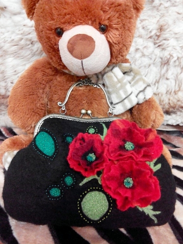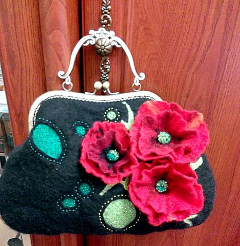 Цветы не обтрехаются:), два года ношу сумку с маками, листики чуть чуть скатались, нужно подстричь. Дафна, к вашему новому красивому платью подойдет валяная брошь. :)