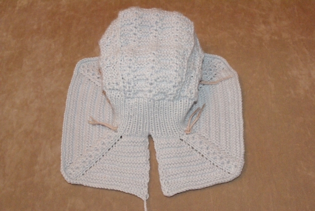Оплечье вяжем необходимой длины. Менее 10 см нецелесообразно. После чего закрываем все петли.