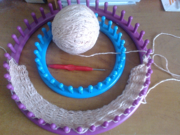Ещё имеются лумы механические. Нитку по кругу вставляешь, крутя ручкой, а потом просто ручку крутишь и вяжешь, так намного быстрее, но я такое чудо ещё в середине 90-х видела и думала для чего нужно? А теперь нет уже в продаже.