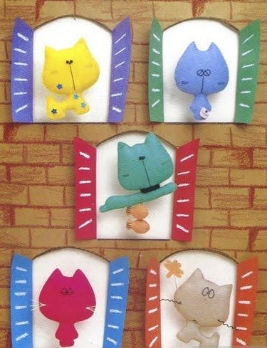 Таких милых котиков можно сделать для панно в детской, можно сделать из них брелочки, подвески для телефона или подвесить на елку.