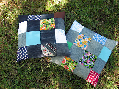 А это мои «потуги» в пэчворке! Подушки-сидушки на природу, лоскуты остались и джинсы старые в дело пошли!
