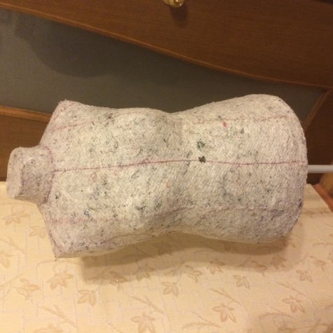 Давно хотела манекен. Стоимость готового никак не радовала. Вот и побродила по просторам интернета и решила сделать сама по своим меркам, 58 размера. В процессе я использовала: пленку пищевую, скотч фольгированный (хотя покупала армированный), много газет, ведерко из-под майонеза, ватин1,5 м, скотч обычный бежевый, 3