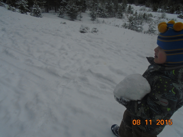 Надо пополнить запасы, а снег не липнет. Но мы же с выдумкой, здесь же всё тот же снегоход пробегал, снег вздыбил почти идеальными комками:
