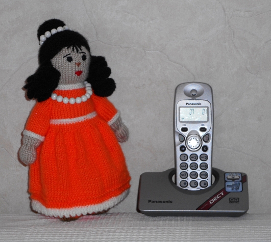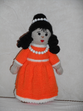 Захотелось связать маленькую куколку. Вот получилась ростиком 22 см. Внучке понравилась, но играть не стала, поставила на полочку с вазой.