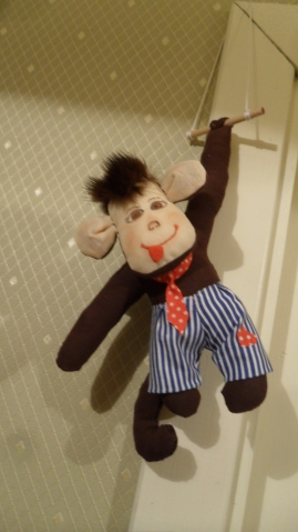 Девочки, Вам ещё не надоели мои обезьянки? Сшила вожака маленькой стаи обезьянок. Ткань трикотаж, чубчик - норка со старой шапки. Идея нашей форумчанки Ольги.
