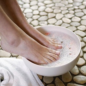 В теплой воде растворить соду, мыло. Взбить пену. Подержать ноги и почистить с помощью пемзы или педикюрной щетки.