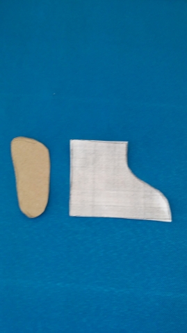 Дальше занялась обувью для куклы .Выкройка сапожек под цвет платья -красные.