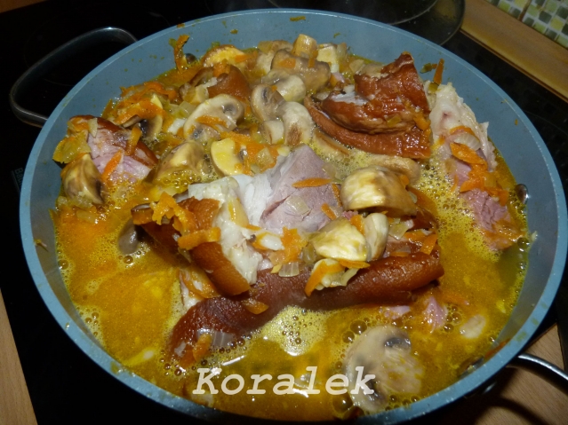 Готовлю с копчеными ребрышками и полукопченой обжареной колбаской, частенько готовлю горошницу.