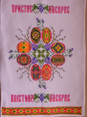 Очень понравились рушники и вышиванка. Две салфеточки на одном фото — голубая и зеленая — очень интересные. Аккуратные топиарчики. А вот из чего золотое яичко — раскройте секрет?