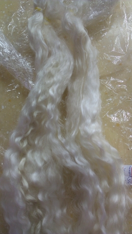 Затем клеим волосы куколке. Проклеиваются отдельные маленькие прядки клеем Момент (прозрачный).