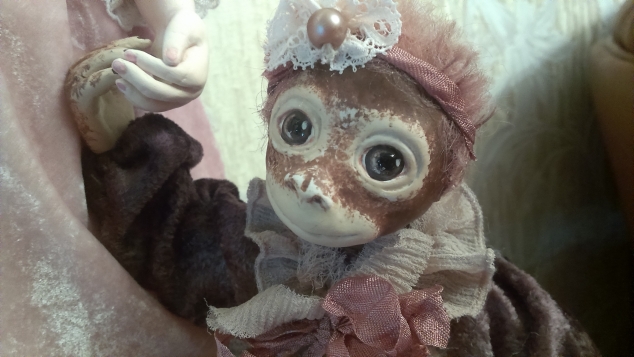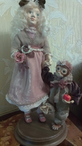 Никогда не участвовала в конкурсах по рукоделию, и никогда не давала мастер-классы. Не собиралась делать мартышек, потому как проказницы и кривляки не на мой вкус. Но не устояла, когда был объявлен конкурс. Влезла в интернет и нашла чудесные мордашки этих непосед. А в одну просто так влюбилась (она ниже), что немедленно захотелось ее сделать, но не одну, а в паре с девочкой, чтоб не скучно! Сделала композицию на одном дыхании. Очень она не простая, трудоемкая, и содержит очень мелких деталей для проработки. Но было интересно сделать то, от чего так отказывалась.