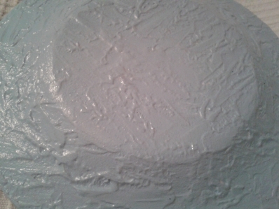 Обратная сторона должна быть тоже красивой. Блестки дают неровности, чтобы их скрыть я шпатлевку накладываю тонким слоем и на ней мастихином делаю «рисунок».