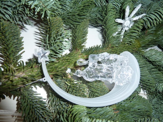 Мы как переехали в эту маленькую квартиру, да и дети выросли, поэтому ставим в корзинки с флористической губкой ветки хвойных деревьев с разными украшалками вот несколько фото давние с сотика видно плохо