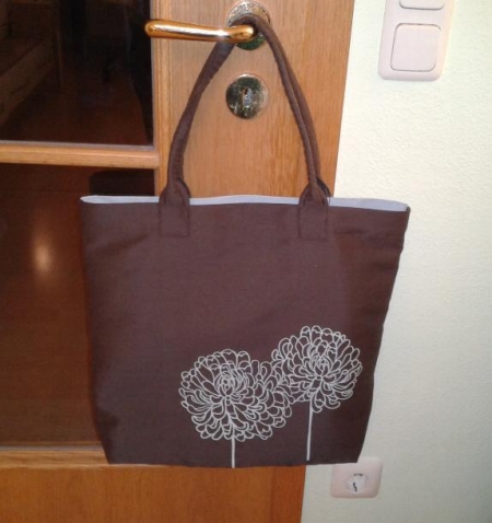 Вот мой пилотный экземпляр. Сразу стало ясно, что он некоммерческий(((. А была такая мысль, может быть, на заказ их шить. Машинка не тянет это дело, когда много слоев, и ткань сложная, двусторонняя. Слабое место - ручки. Пришлось некрасивые машинные швы вручную покрывать толстым ручным швом. Это работа и время, но для себя пойдет. Мне нравится сумочка, что получилась.