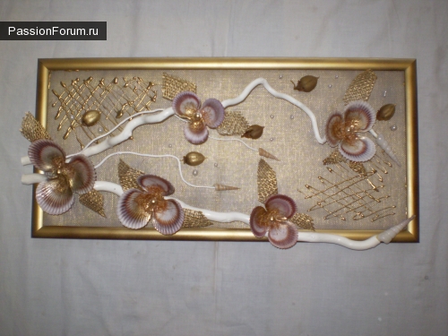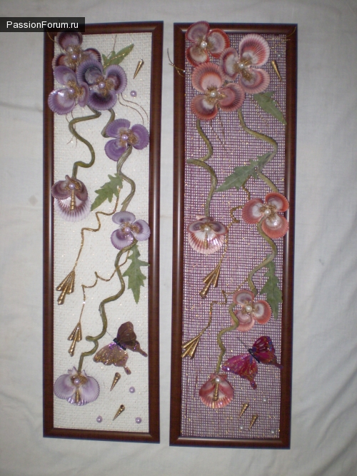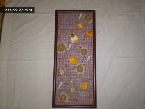 Некоторым ракушкам нету места): Задумка интересная, но картинам лучше в более широких рамках. Попроуйте хоть одну сделать на большем фоне. Сразу увидите разницу): Все работы ну очень интересные и красивые