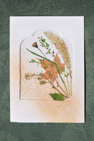 Открытка используется по назначению, ведь клей ПВА хорошо держит и защищает сухоцветы.