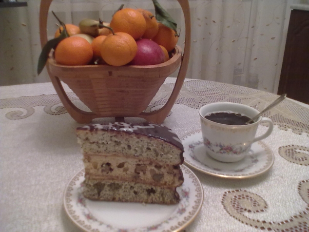 Кто не любит сильно сладкое, можно везде сахара брать чуть меньще. Я последнее время делаю 2 коржа с маком, один с орехами ил два с орехом один с маком.. По просьбе сына. Вырос и почему-то не ест изюм.