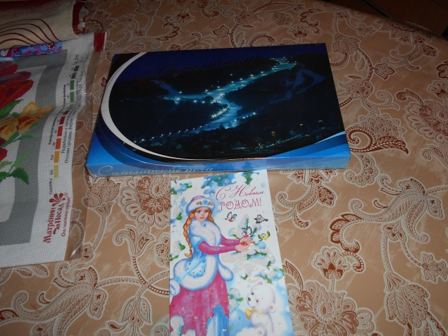 Девочки, хвастаюсь перед вами моими подарками. Пожалуйста порадуйтесь вместе со мной. Кроме подарков я получила новогоднюю открытку и душевное тёплое письмо. Только ник свой снегурочка забыла написать.