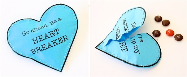 Во многих школах, институтах и даже на работе в День Всех Влюбленных работает «Валентиновская почта». Предлагаем отличный вариант для поздравительной валентинки с конфетами.