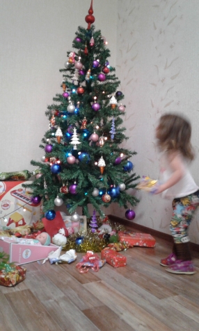а в новогоднюю ночь Лёле еще предстояло окрывать сюрпризики от нашей новогодней Снегурочки Ларисы,от Снегурочки((точнее от Миссис Клаус)) Тамары,от Снегурочки Женечки.все сюрпризики я упаковала в красивую оберточную бумагу,тайком все сложила под ёлочку,а утром Лёлечка все открывала с визгами))).Эмоций было мноооого)))Спасибо вам за продолжение праздника!!!
