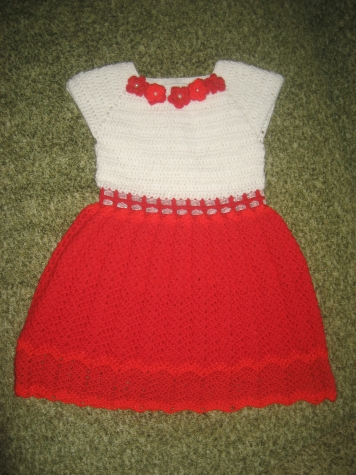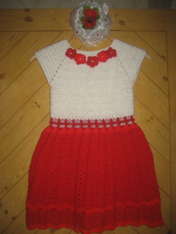 увидела я очень красивый бантик, да за смешную цену - 10 грн.! Но! у меня-то два сына! дети друзей выросли... Ходила я вокруг,ходила, думала, кому подарить такую красоту... и вспомнила!!!! У мужа-то ведь крестница есть! 5 лет! - то, что нужно. Купила. Но я - не я, если усложню себе жизнь... Что ж я, подарю просто бантик???? Неее, так не бывает. Решила связать "платье к бантику"))) Думаю ниточки в остатках есть, скомбинирую, будет то, что нужно! Короче, остатков не хватило - пришлось докупать, цвет нужный подобрала в недешёвых нитках, потом купила ленточку ( у меня белого цвета не оказалось), хорошо, хоть жемчужинки были, но... эх... В общем, смотрите, что из этого получилось. Подарок к Новому году.
