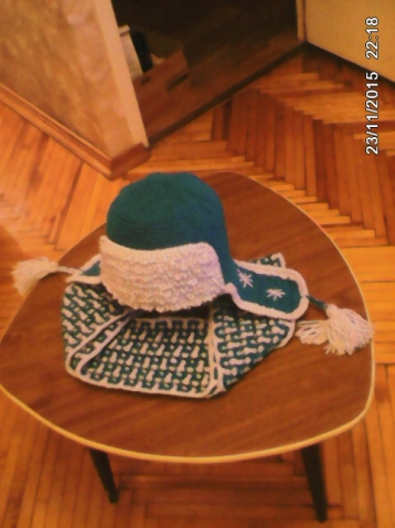 Симпатичный комплект. Интересная схемка на шарфике, только плохо видно. Поделитесь с нами схемкой, пожалуйста.