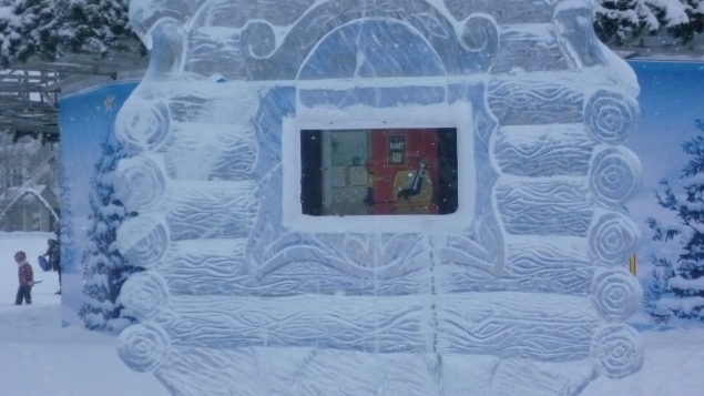 телевизор вмонтировала в ледовую избушку Бабки Ёжки и постоянно крутят наши совдеповские мультики