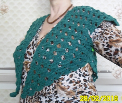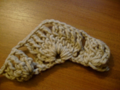 А во втором ряду я провязала одну ракушку подхватила цепочку из 8-ми ВП и опять провязала ракушку.Заметили я не делаю никаких цепочек между этими под мышечными ракушками в этом ряду.