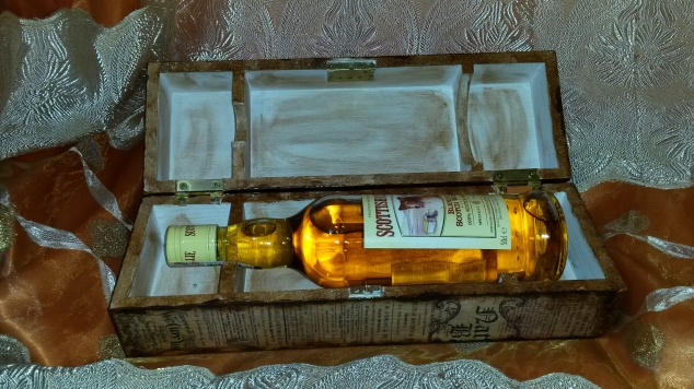 Для бутылки виски коробочка в самый раз. Я имею ввиду оформление. А газеты настоящие или распечатки?