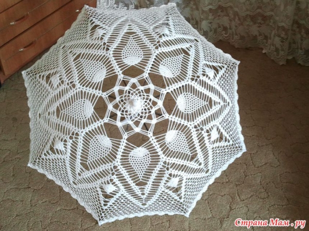 Насчет совместника не знаю, сейчас довязываю зимние вещи и начинаю сложное платье. Если будет заказ на зонт, то только тогда. Выбирайте совсем простую схемку, вот как на 4 фото, при всей кажущейся сложности, схема простая. Будут вопросы, я помогу