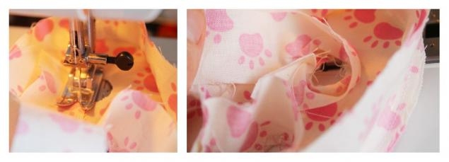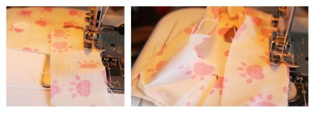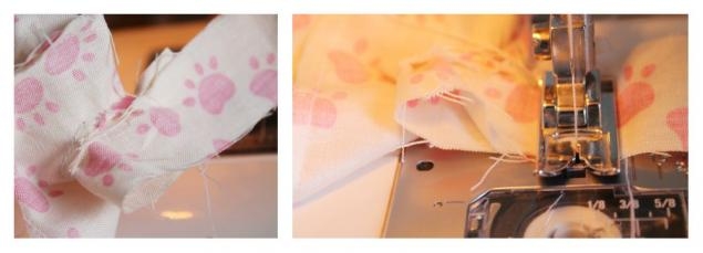 Теперь нужна еще одна тканевая полоса, той же ширины, но намного короче, для обработки дырочки от бублика)