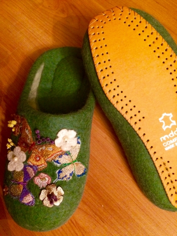 Замечательные тапки, да вдобавок зеленые. И с шелковой вышивкой!!! Отпад.