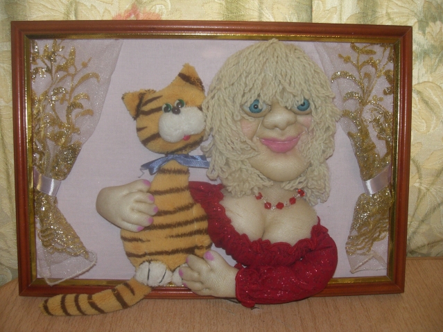 А это панно на юбилей даме, страстно любящей своего кота. Так с котом и заказали... Пришлось добиваться портретного сходства... и хозяйки и кота...