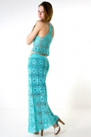 Летний костюм "Лазурь" выполнен крючком из 100% хлопка.Собран из квадратных мотивов.
