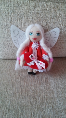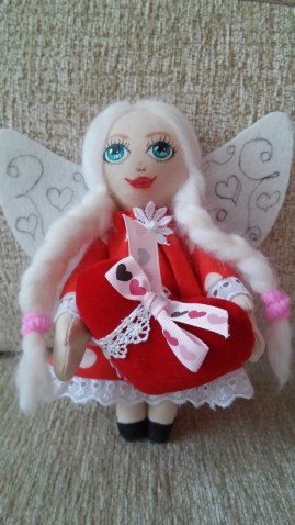 Вот родился ангелочек к дню Валентина.Не знала из чего сделать крыло ,пришлось из фетра выполнить,но так вроде не плохо смотрится.