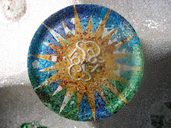 Его легкая, светлая, необычная архитектура находит свое отражение и в рукоделии. Эту солнечную мозаику, украшающую потолок одной из террас в парке Гуэль в Барселоне, можно перенести на полотно при помощи крестиков и создать в своем доме атмосферу особой теплоты и магии, свойственной шедеврам непревзойденного мастера.