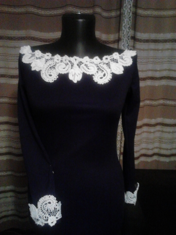 Воротничок и два манжета выполнены крючком из 100%хлопка в технике ирландского кружева по мотивам студии вязания Annora Irish Lace.
