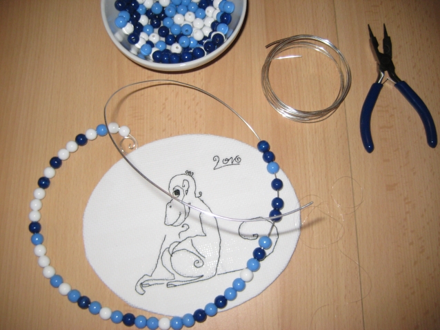 пяльца, вышивка, деревянный бисер трёх цветов (диаметр 14 мм), проволока, кусачки и круглогубцы, ленточка для украшения, плотный картон, белая бумага, двухсторонний скоч, мононить прозрачная, ножницы, карандаш, мелок для ткани, фетр.